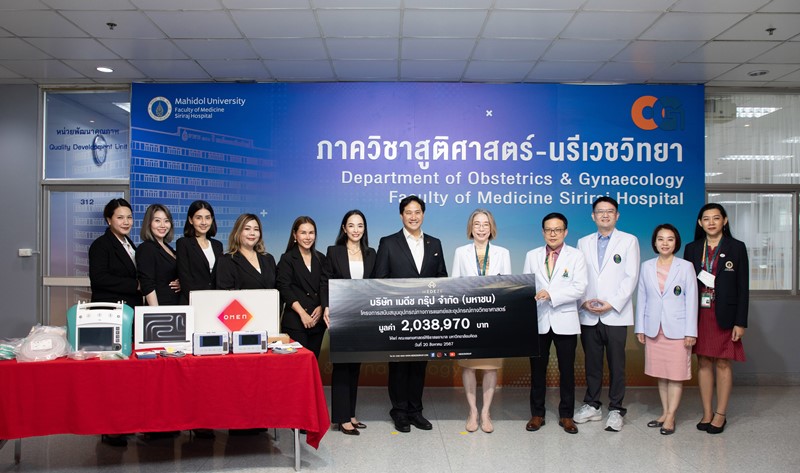 “เมดีซ กรุ๊ป” สนับสนุนเครื่องมือแพทย์ ให้แก่ ภาควิชาสูติศาสตร์-นรีเวชวิทยา คณะแพทยศาสตร์ศิริราชพยาบาล มหาวิทยาลัยมหิดล