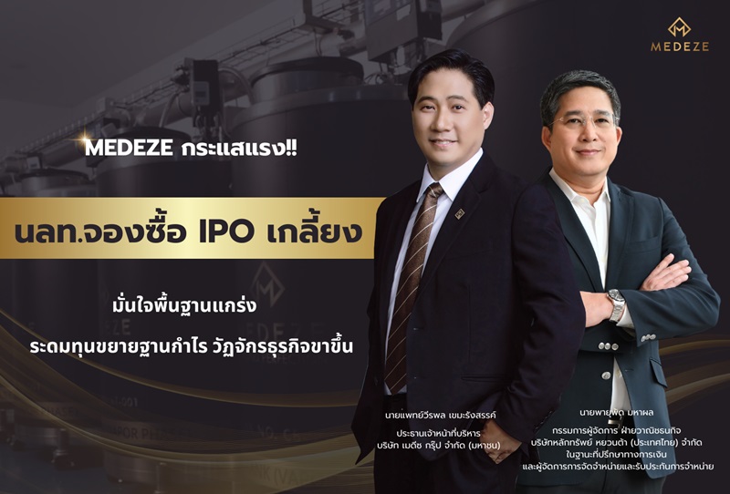 MEDEZE กระแสแรง นลท.จองซื้อ IPO เกลี้ยง มั่นใจพื้นฐานแกร่ง ระดมทุนขยายฐานกำไร วัฏจักรธุรกิจขาขึ้น