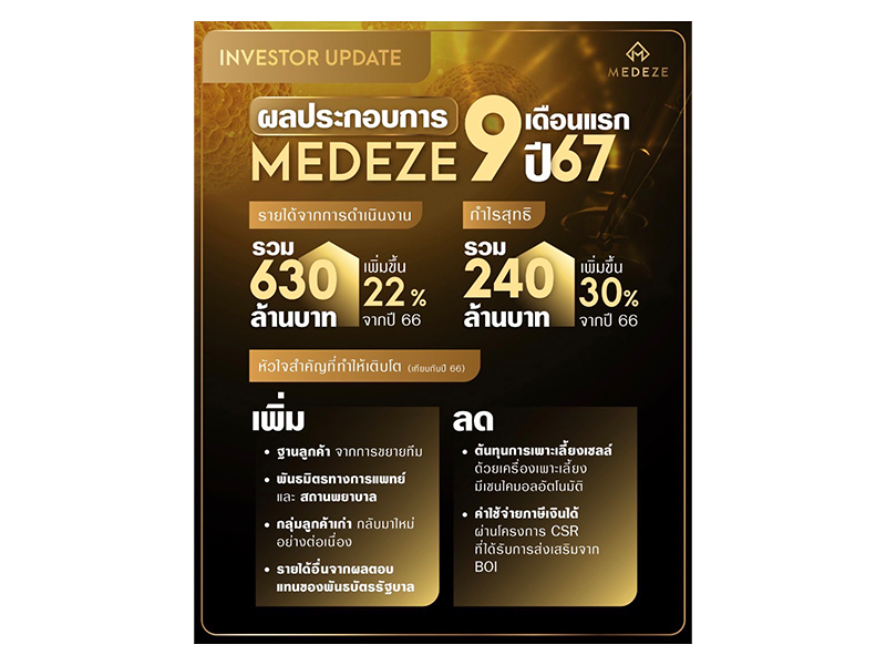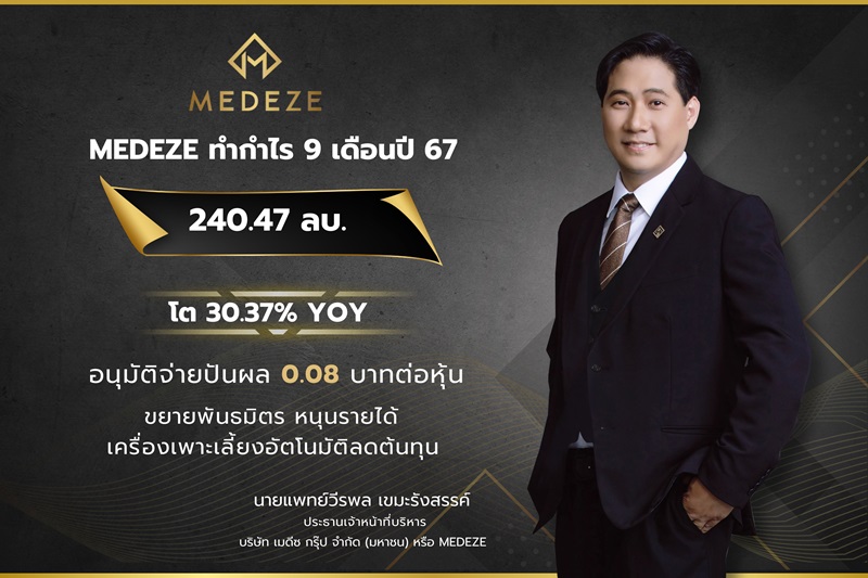 ผลประกอบการ MEDEZE 9 เดือนแรก ปี 2567